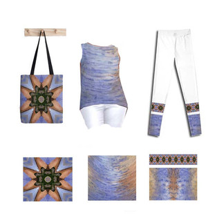 "Alpine Glow" is an original artwork with strong purples, tans, browns and greens are predominant. A wide range of designs were possible from this inspiration. Although digital the designs have a distinct feel of being hand painted. I use several different sites to test my designs, a small portion of which are available for purchase applied to merchandise. In the case here I used some of my large print files for all over design but they can and are be sized down for other applications.